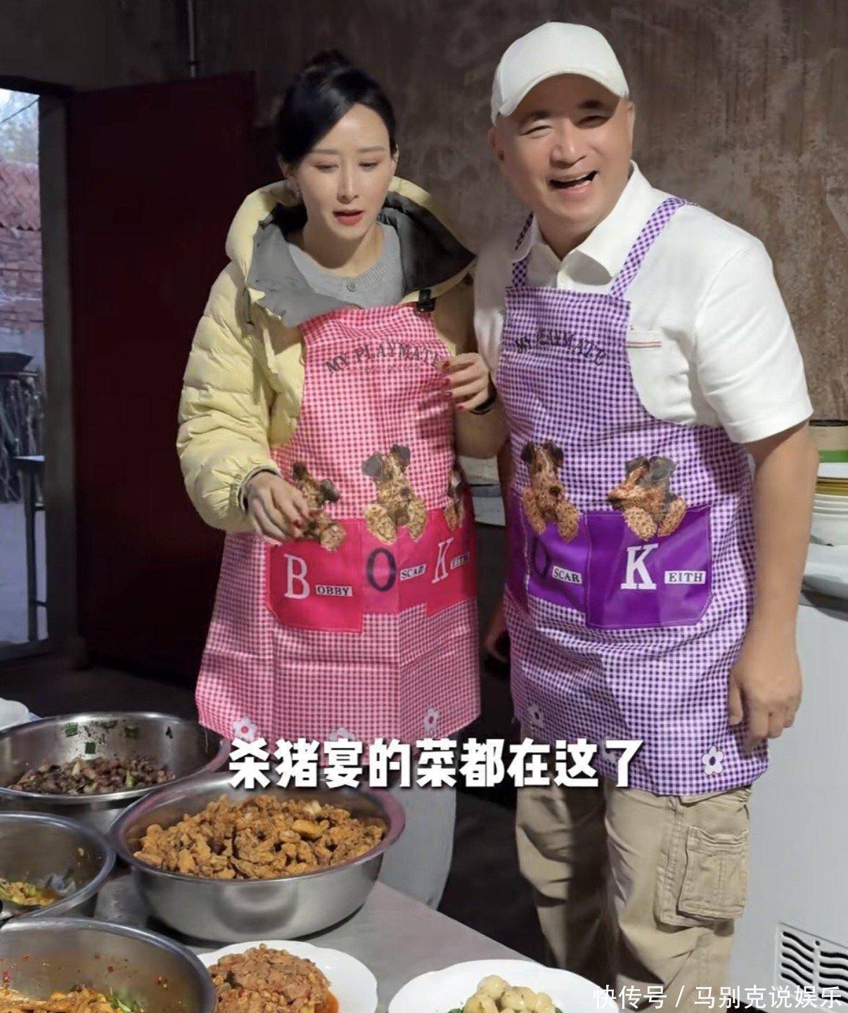 想瞧瞧八大碗是怎么做出来的,那就得进厨房去。胡静给自己和丈夫都备好了围裙,她系上那条粉色小围裙,模样特别俏皮,丈夫的围裙则是紫色的。