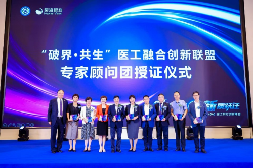 此次峰会设置“聚势.共生”和“链动.创变”两大核心议程,深度聚焦政策导向与技术创新两大方向,围绕医学科技成果转化、视光技术发展、白内障治疗创新及眼底病诊疗突破等关键领域。会上重点展示了多项具有里程碑意义的医工转化创新成果,其中不少得益于昊海生科牵头承担的“十三五”国家重点研发计划“新型人工晶状体及高端眼科植入材料的研发”项目的支持:包括荣获了国家科学技术进步二等奖的医用水溶性几丁糖的制备工艺,以及这项工艺在骨科、外科、眼科领域成功的临床转化,例如含几丁糖成分的眼舒康润眼液;白内障治疗从微创到无创的革命性创新产品——无创光学白内障治疗设备;国内首款五焦点全视程人工晶状体——全视佳;全球首款治疗视网膜裂孔的封堵凝胶——眼内用交联透明质酸钠凝胶和开拓复杂眼外伤及视网膜黄斑裂孔新疗法的干态生物羊膜。值得一提的是,会议期间还举办了“破界.共生——医工融合创新联盟暨专家顾问团授证仪式”,标志着在监管、产业、临床三方协同支持下,一批具有临床转化价值的眼科医工转化项目进入规模化落地新阶段。